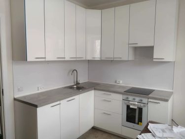 Соберём каркасы, навесим шкафы, дверцы и фурнитуру. Всё отрегулируем. Установим, мойку с сифоном и смесителем.